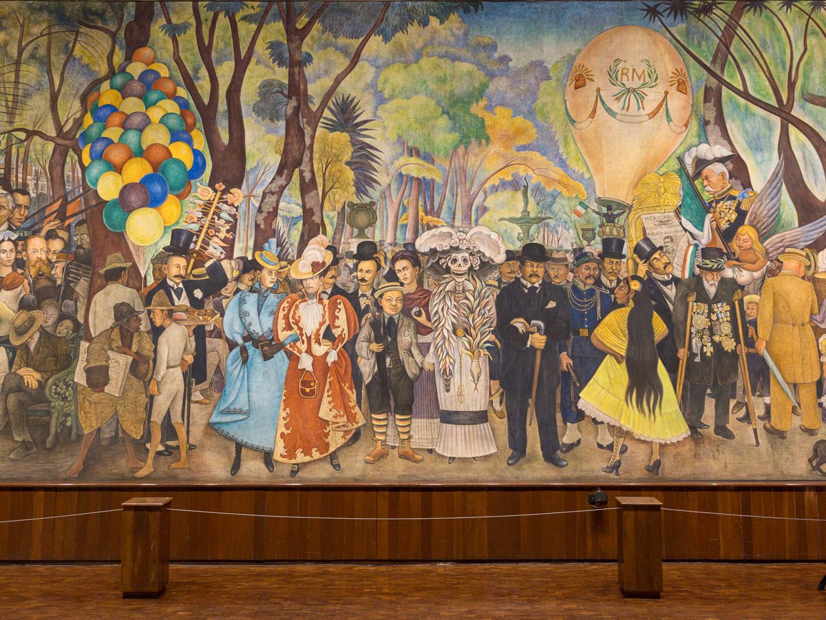 It is not an actual dream, but a monumental mural painted by Diego Rivera between 1947 and 1948. Stretching across 15 meters, the work presents a panoramic, dreamlike vision of Mexican history. More than a hundred figures from different eras fill the scene, among them Hernán Cortés, Porfirio Díaz, Frida Kahlo, and Rivera himself as a child.