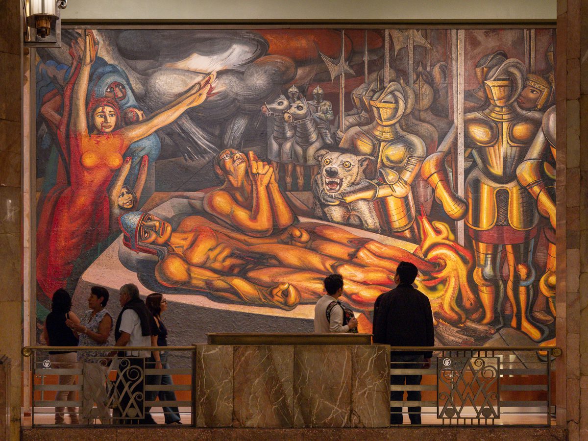 The mural unfolds as a symbolic walk through the nation’s past — from conquest and colonial rule to dictatorship and revolution — culminating in an image of modern Mexico. Rivera’s crowded, surreal composition invites viewers to reflect on the struggles and contradictions that shaped the country’s identity.