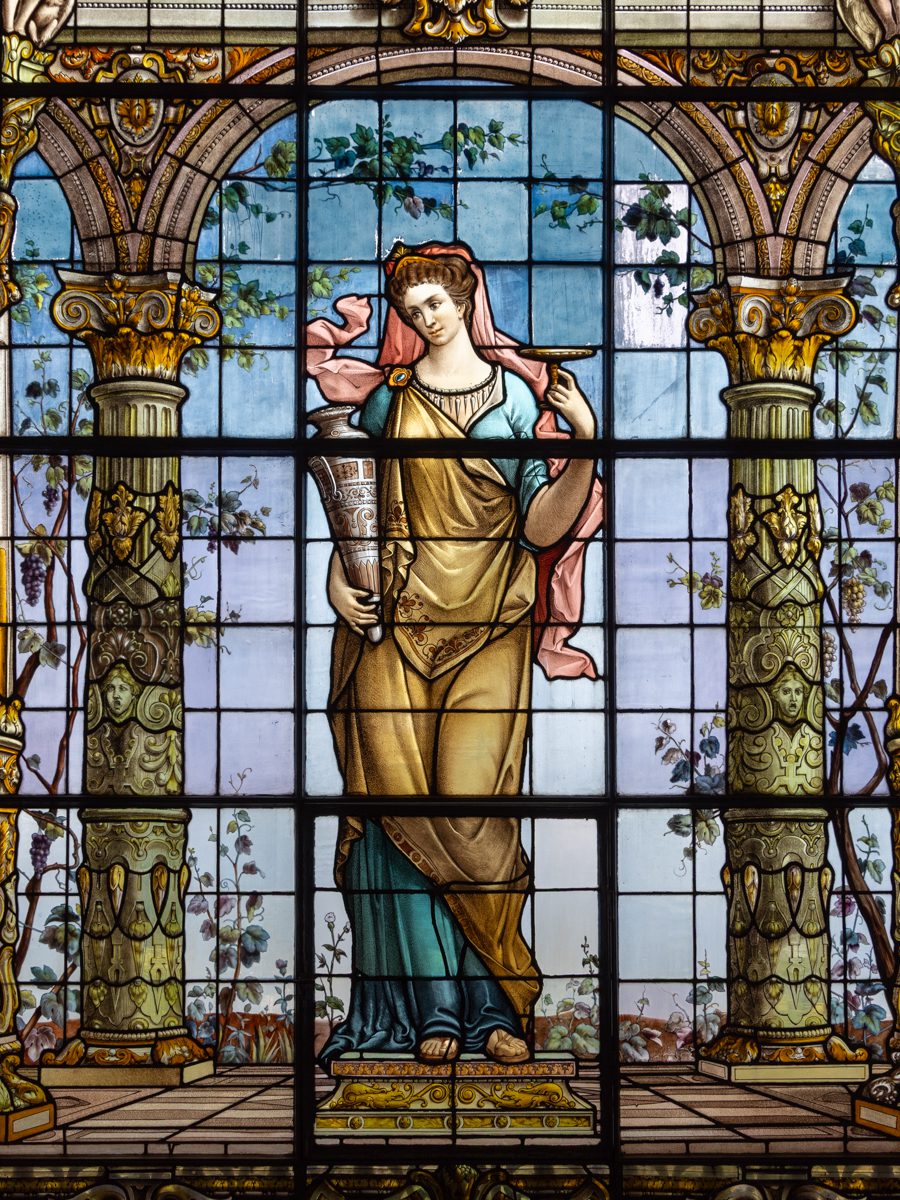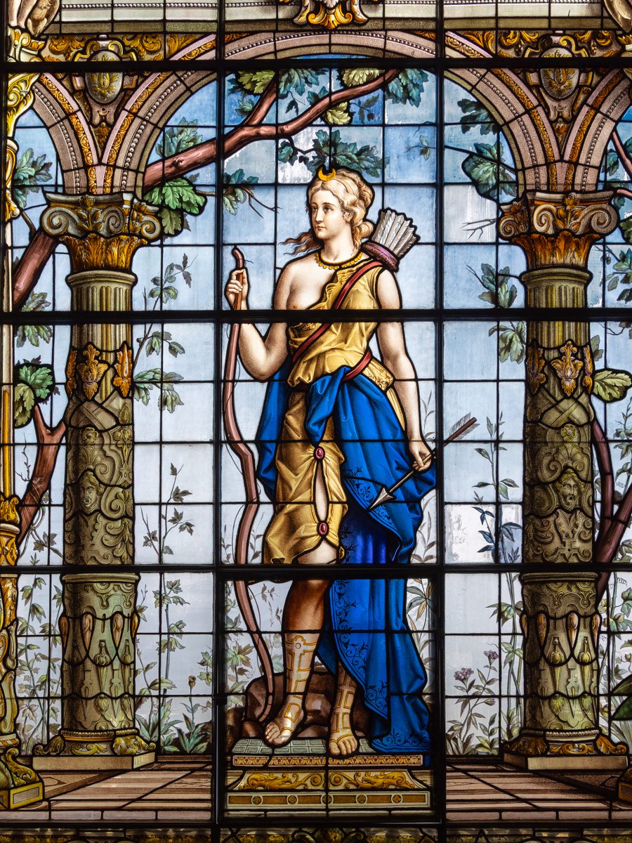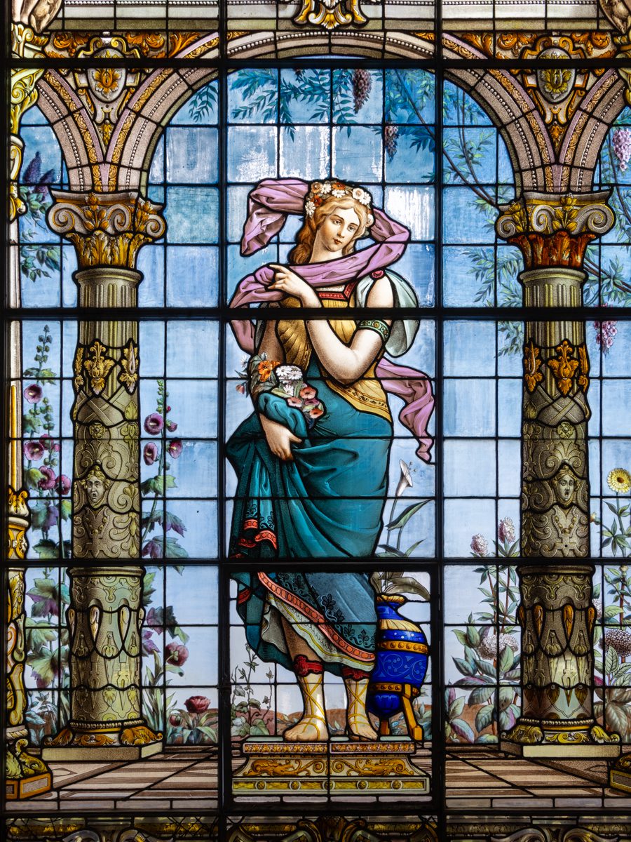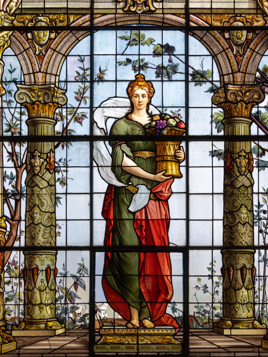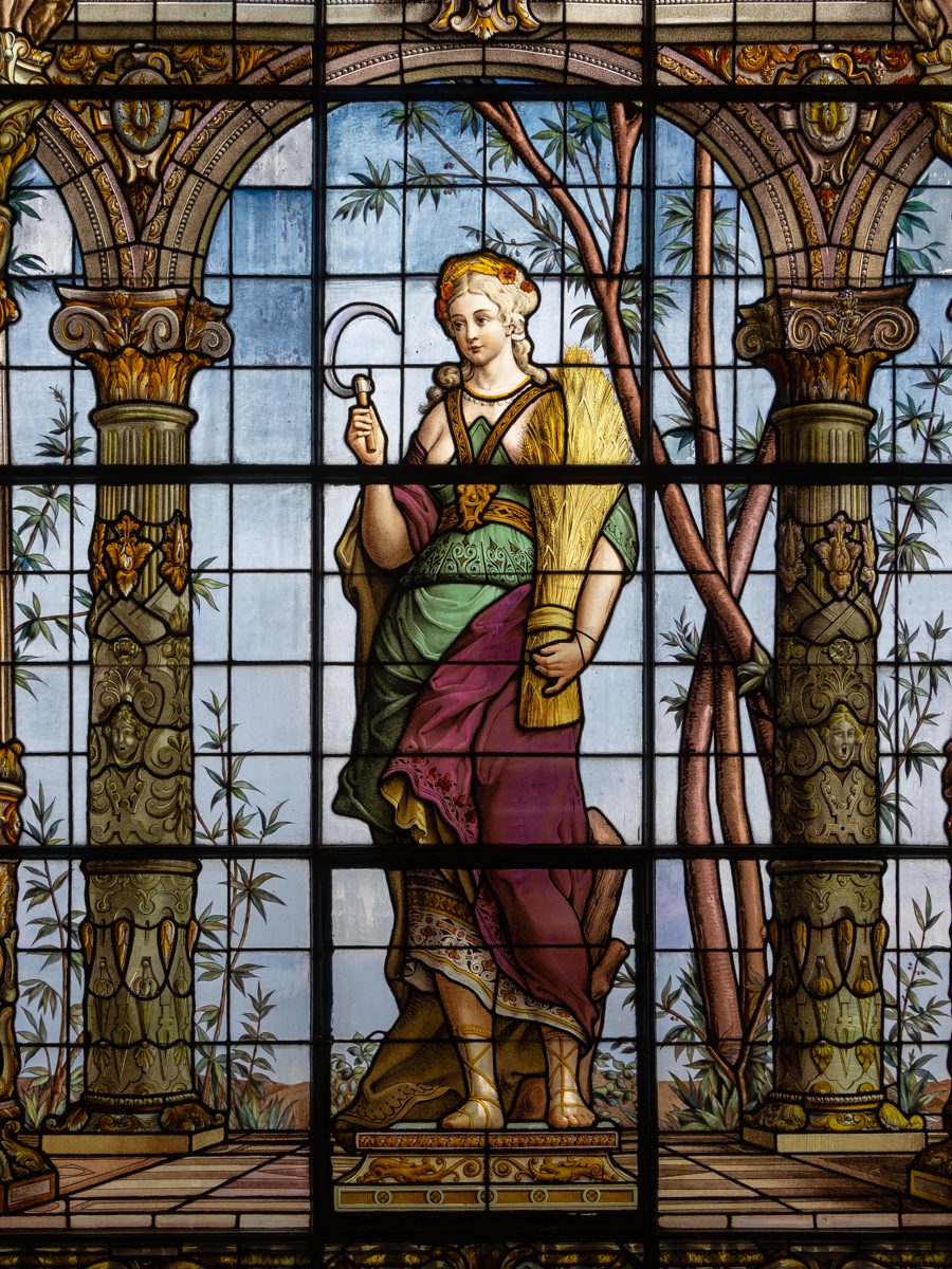 The beautiful stained glass windows featured below were imported from France in the 19th century during the time of Emperor Maximilian I and later under President Porfirio Díaz, who both wanted the castle to reflect European imperial and aristocratic taste. They are mythological and allegorical figures from classical Europe: Diana – goddess of hunt and the moon, Ceres – goddess of agriculture and others representing knowledge, art, beauty, and moral ideals.
