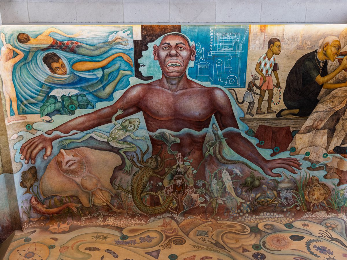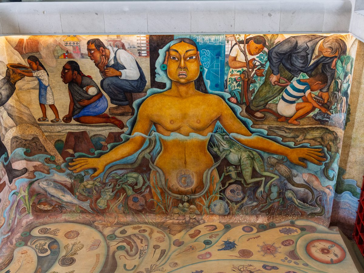 The other murals in the gallery are part of the Carcamo de Dolores Museum in Chapultepec Park commissioned by Mexico City Department of Waterworks painted in 1951. This was built to celebrate the completion of a massive hydraulic project that brought fresh water to Mexico City.